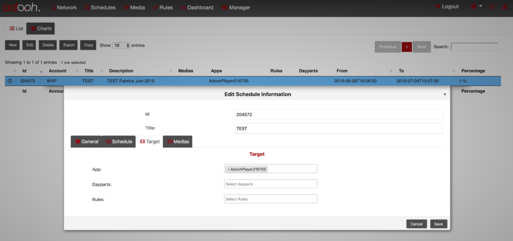 • Schedule your media show by period of time, day parts and rules